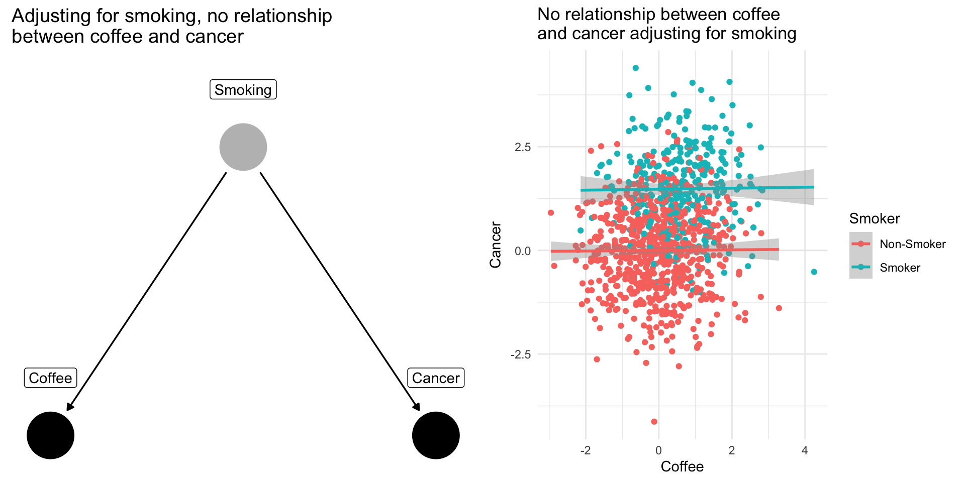 Smoking is a confounding variable, that if omitted will bias our results producing a spurious relationsip