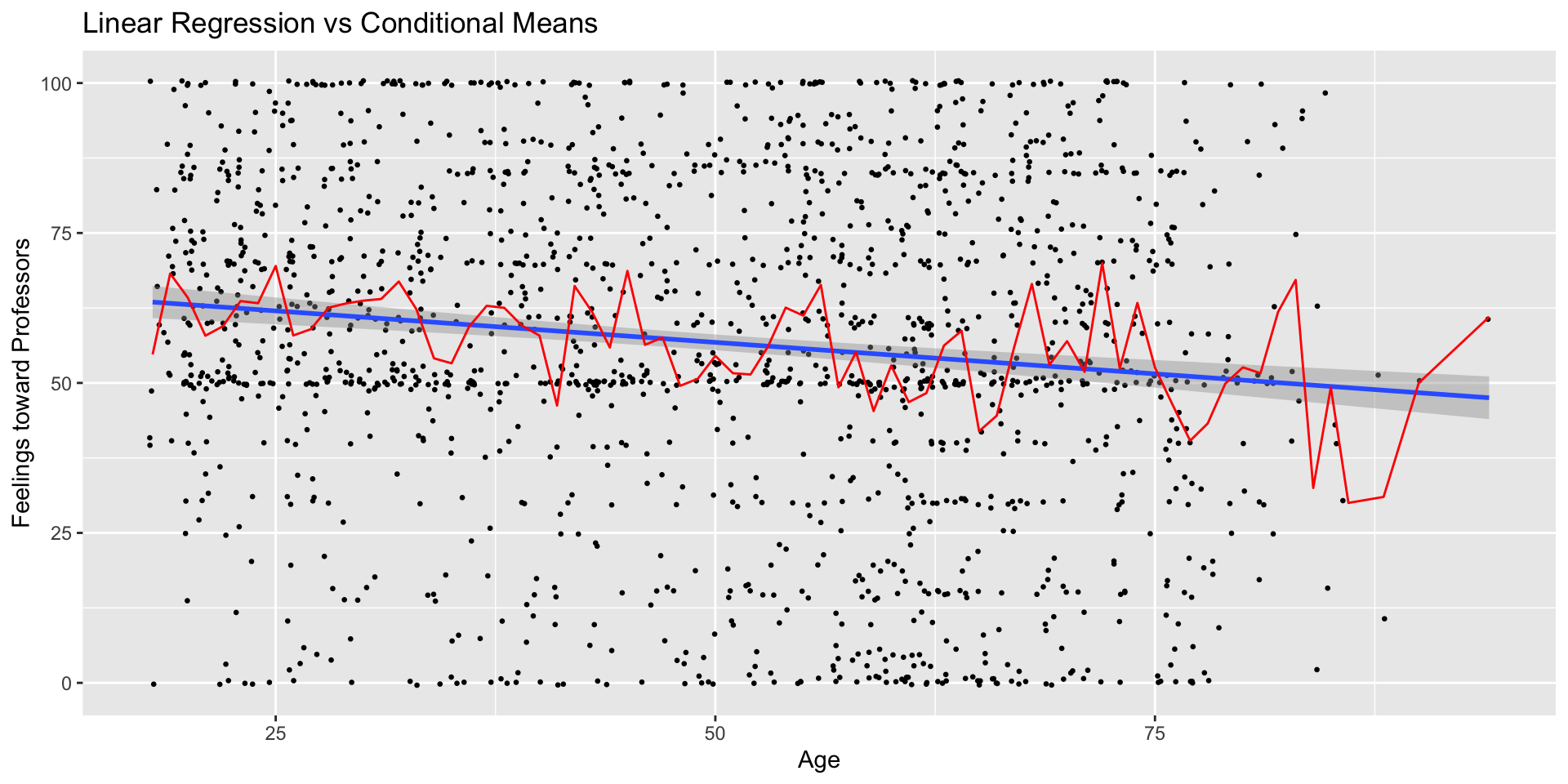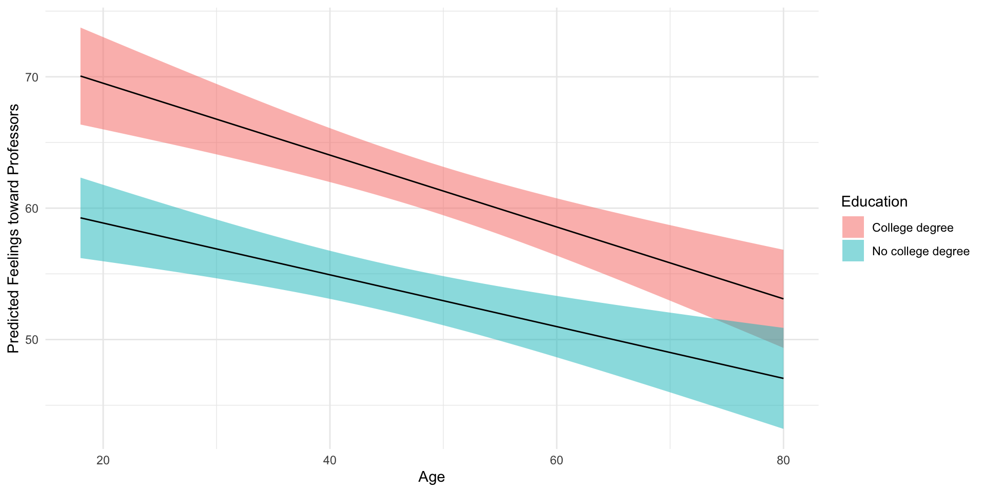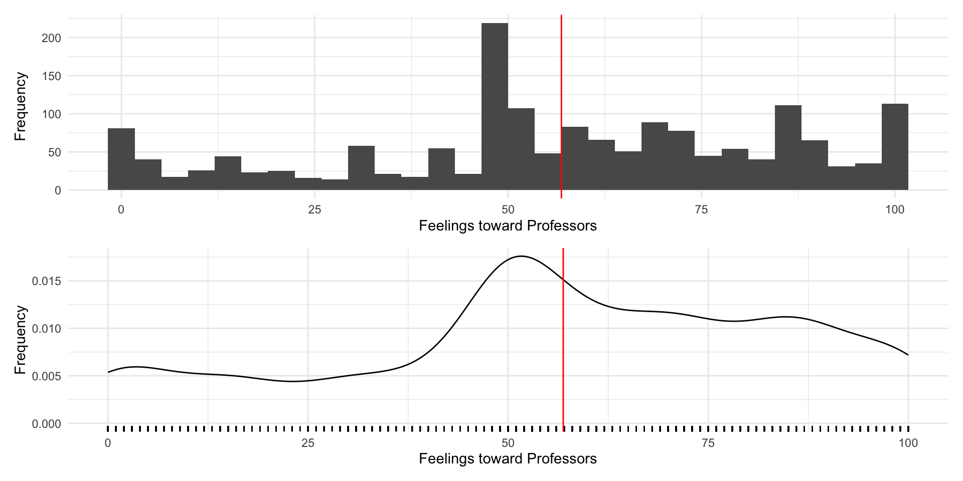 Outcome: Feelings toward professors measured on 0-100 point scale