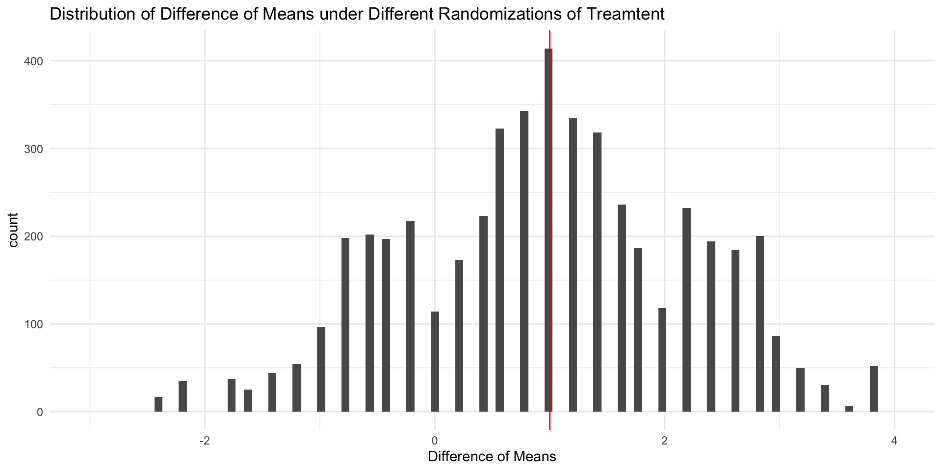 That is, the ATE is causally identified by the difference of means estimator in an experimental design