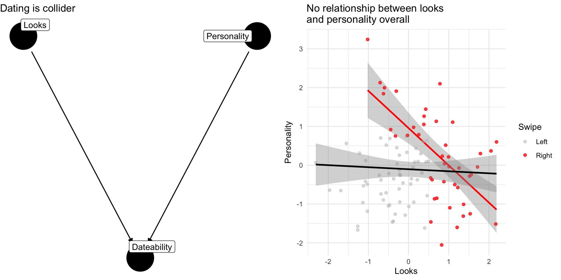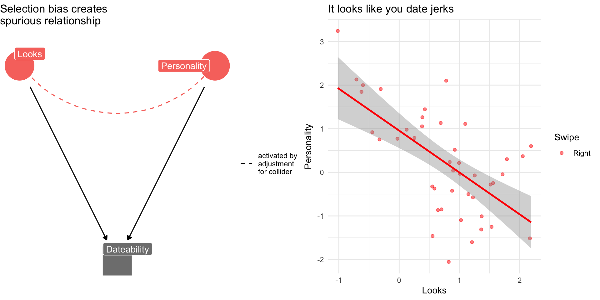 Basing our claim off of who we date is an example of selection bias created by controlling for collider