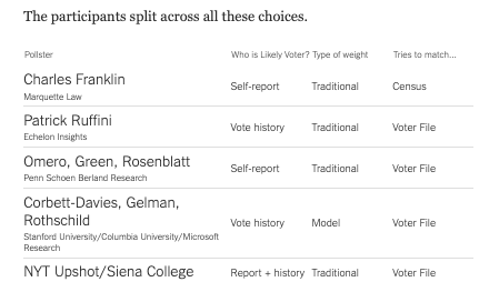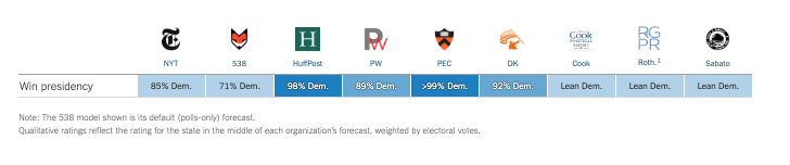 The preeminence of polling in modern forecasts reflects the success of Nate Silver and FiveThirtyEight in correctly predicting the 2008 (49/50 states correct) 2012 (50/50) presidential elections