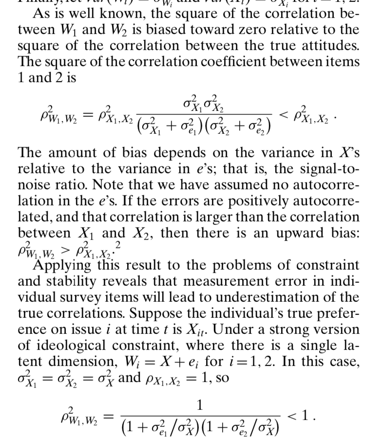 Ansolabehere et al. pick up a critique made by Achen (1975) and others that the lack of constraint is primarily caused my measurement error