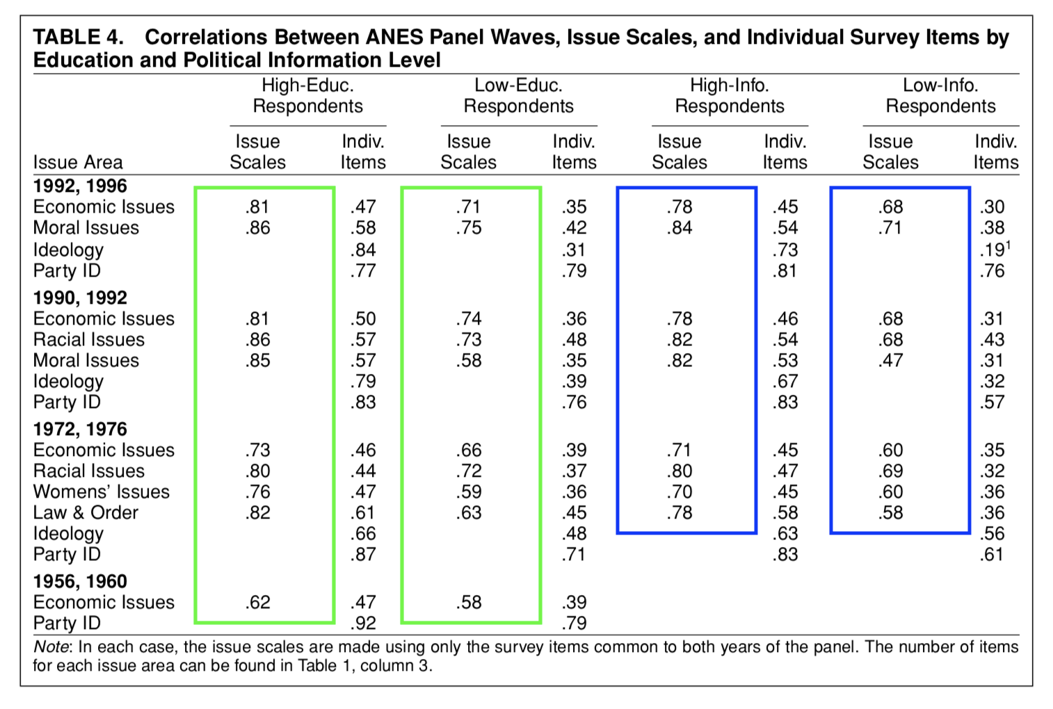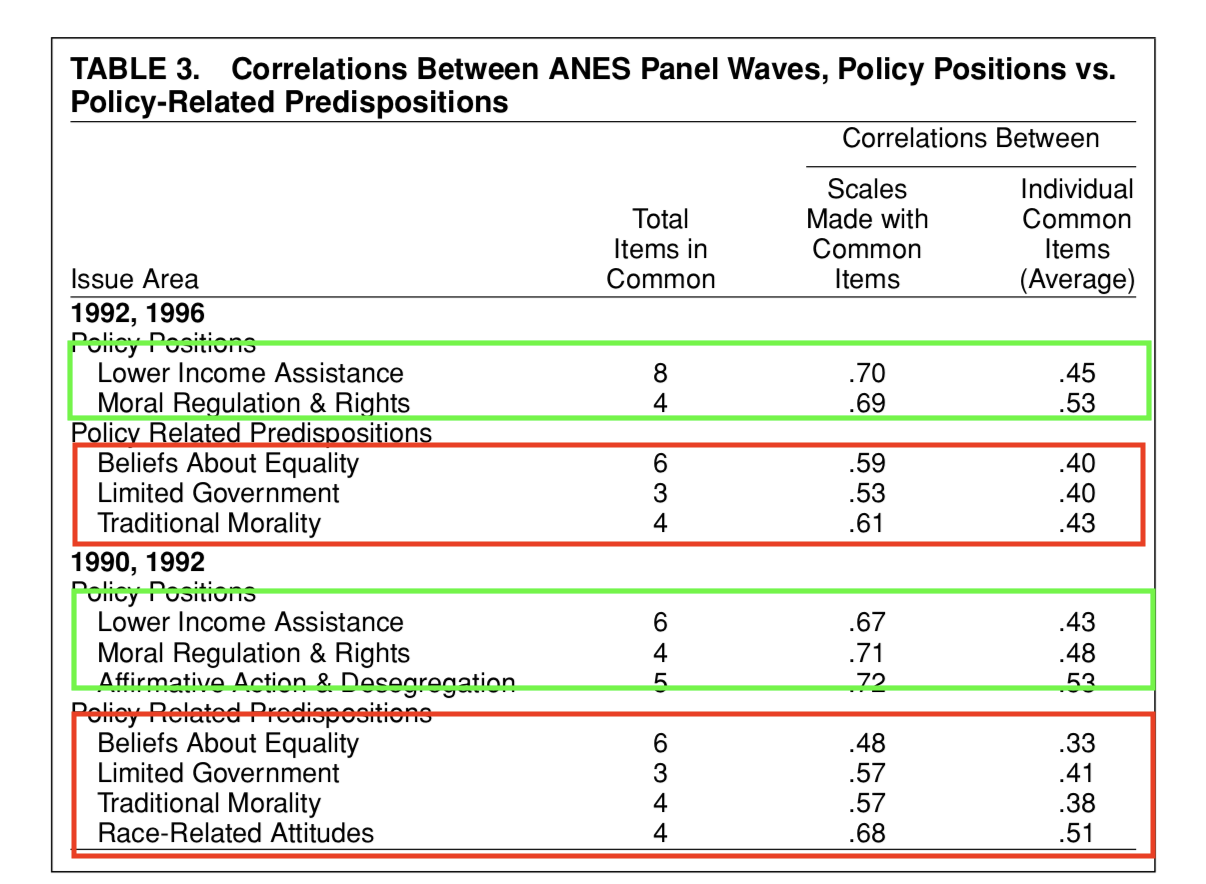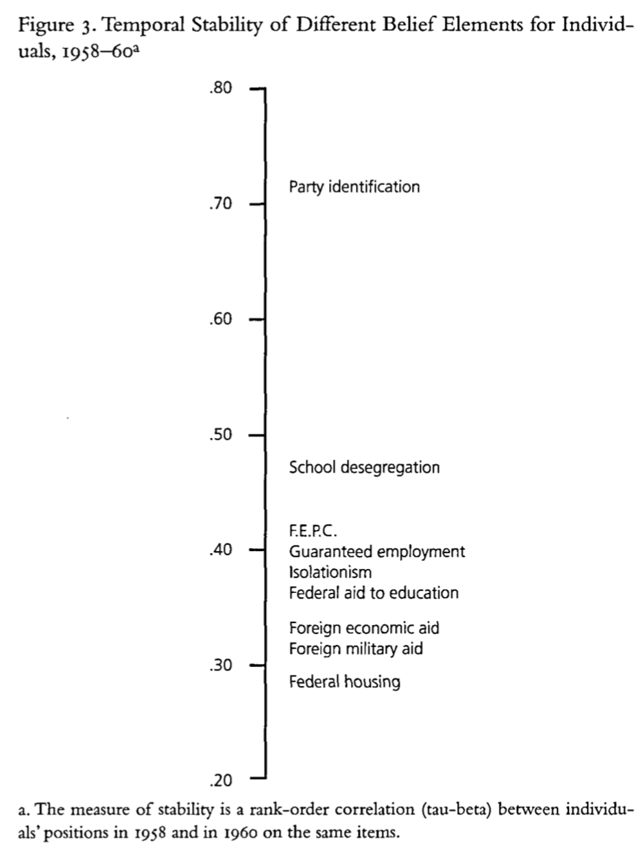The final piece of Converse’s argument concerns the stability of a single belief over time (1956, 1958, 1960):