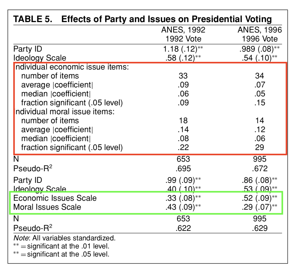 Regression analysis of issue voting