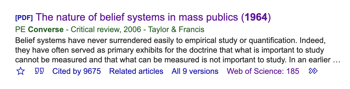 Converse (1964) remains one of the most influential articles in American Political Behavior