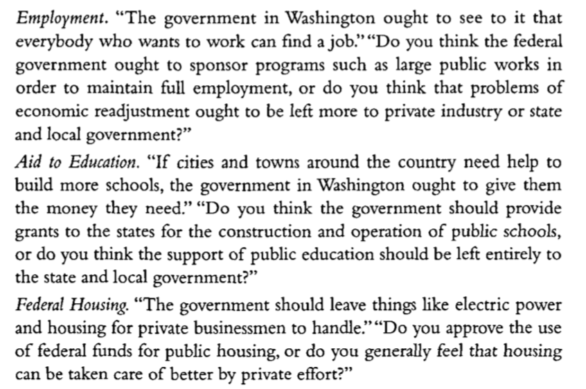 Converse considers people’s open-ended responses to questions about whether there is anything they like or dislike about presidential candidates in 1956 and the political parties discussed in detail in chapter 10 of the The American Voter