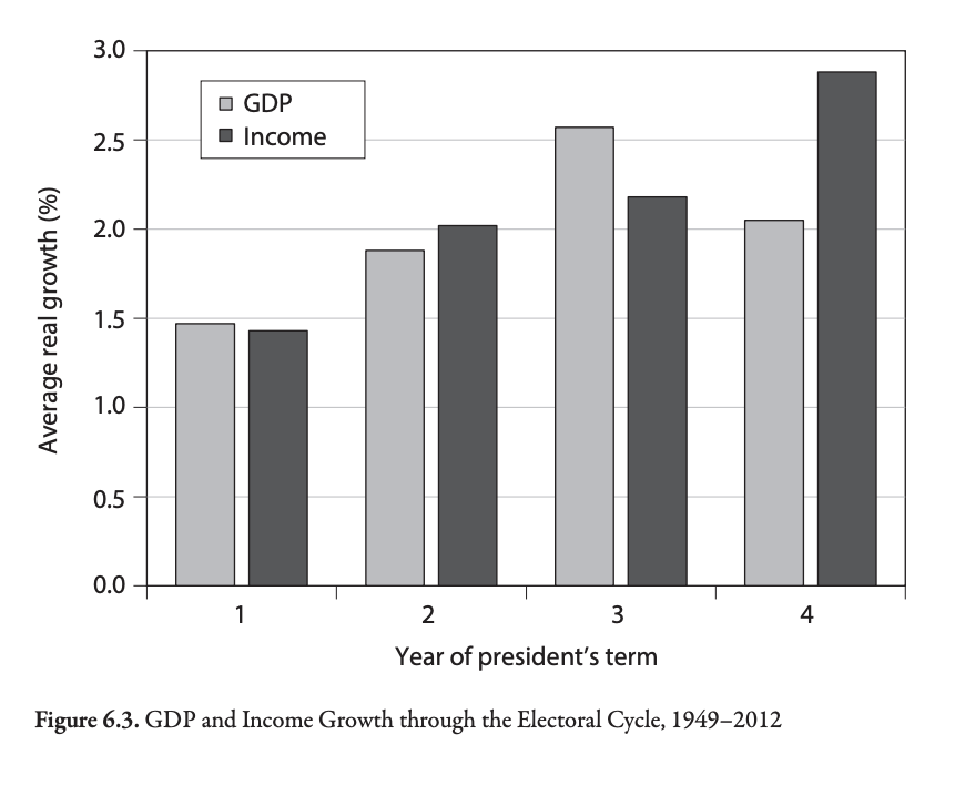 Economic growth appears to increase before elections.