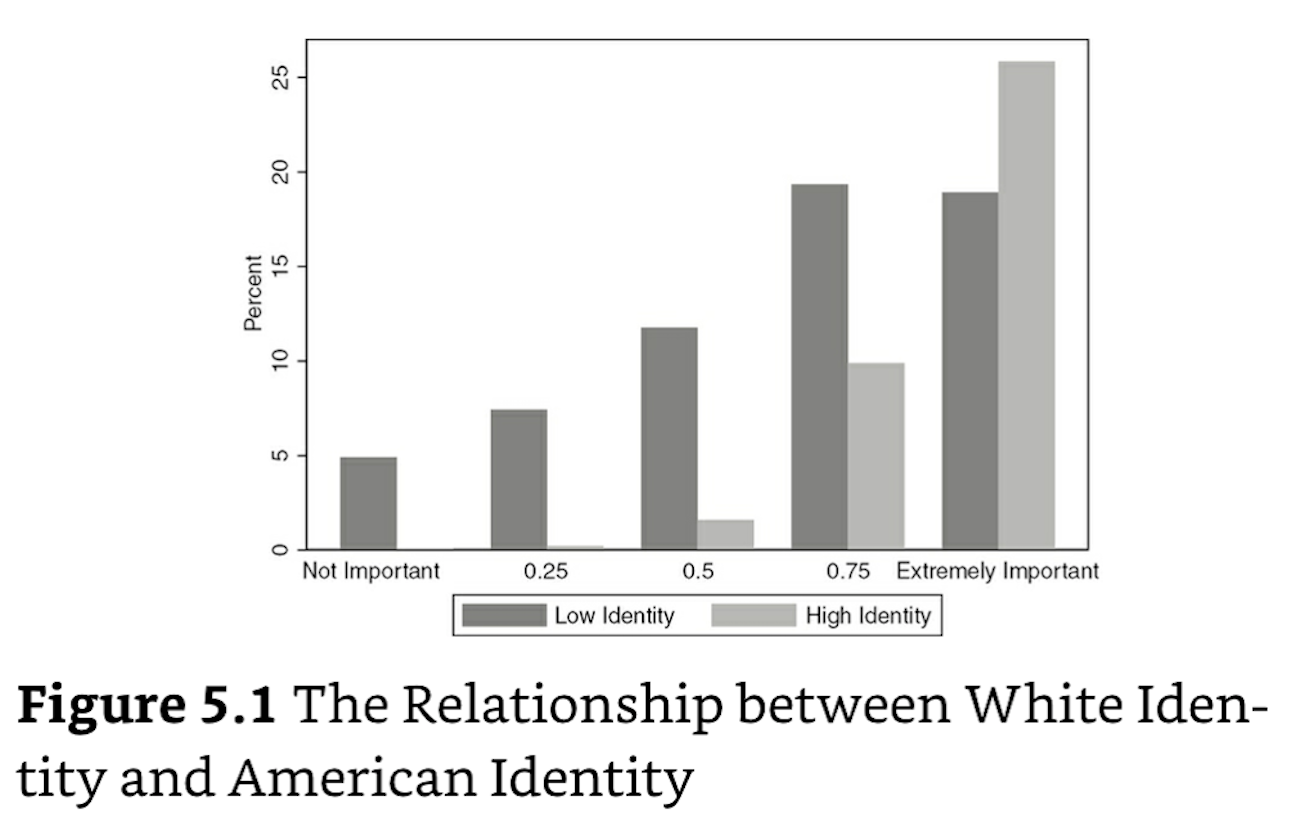 Jardina defines racial consciousness for Whites as identification plus: