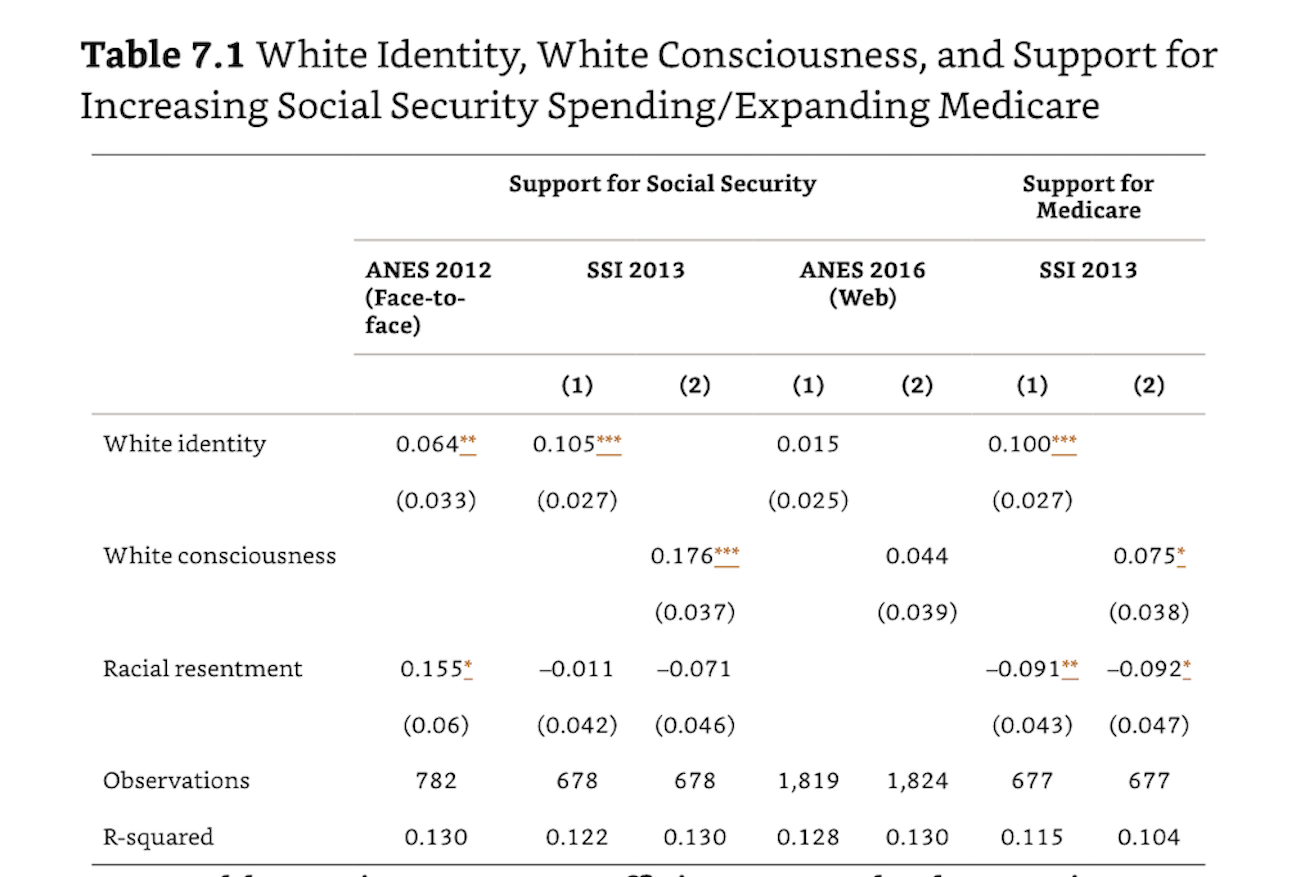This is evidence that White identity can structure policy preferences