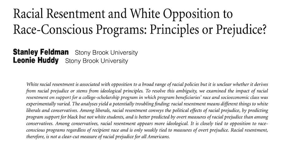 Scholars debate whether racial resentment measures prejudice or ideology