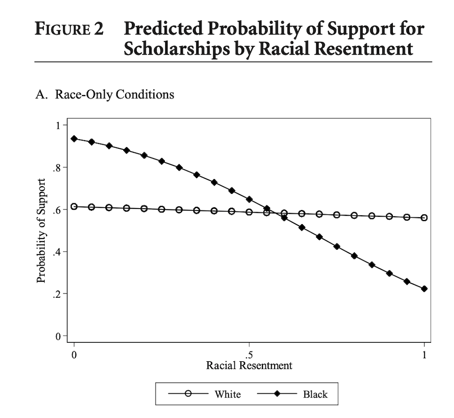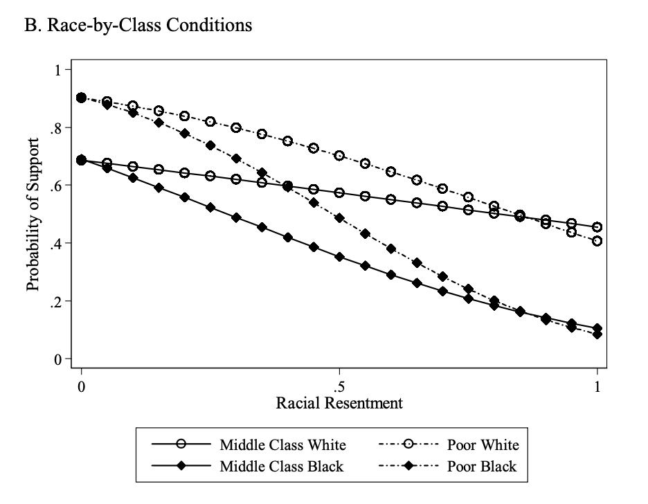 Among some respondents, racial resentment predicts lower support specifically when programs benefit Black recipients