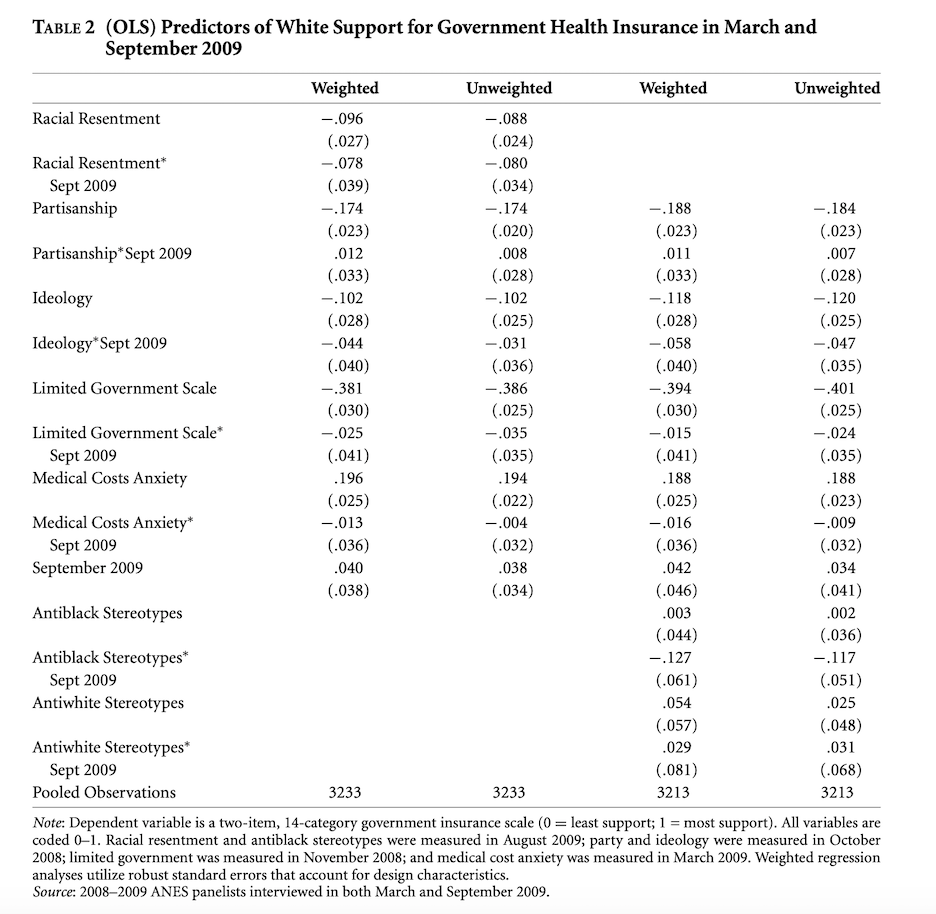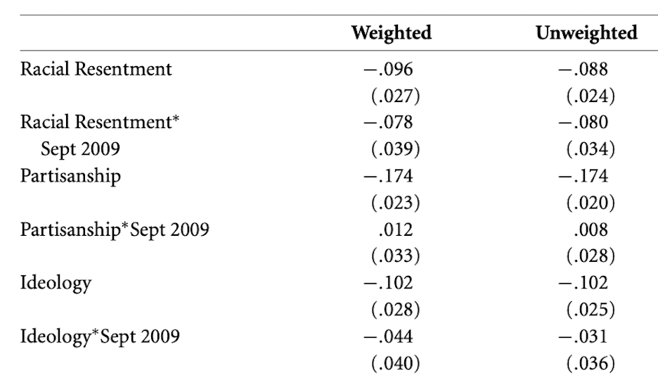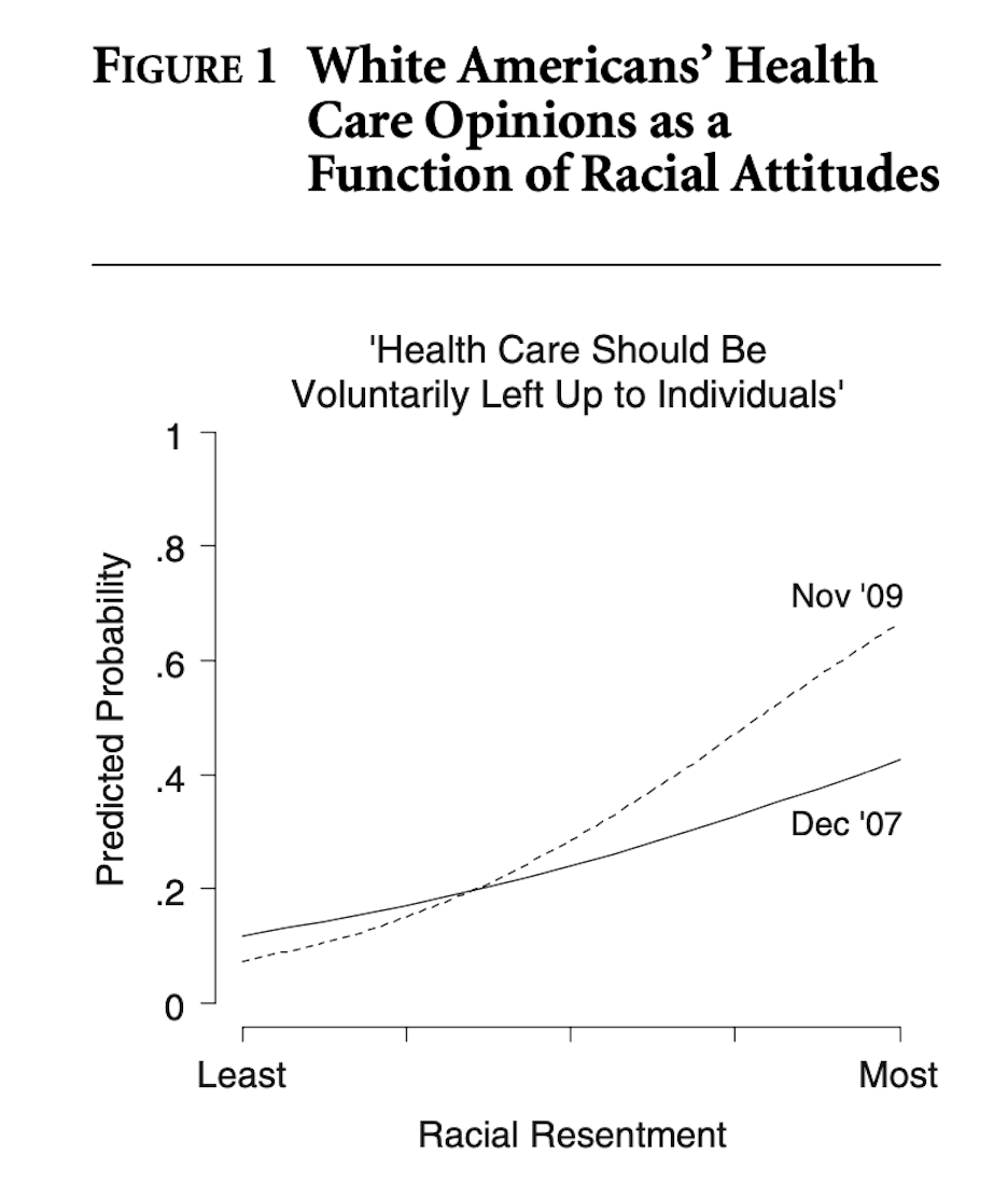 Racial resentment becomes more predictive of health care attitudes in 2009