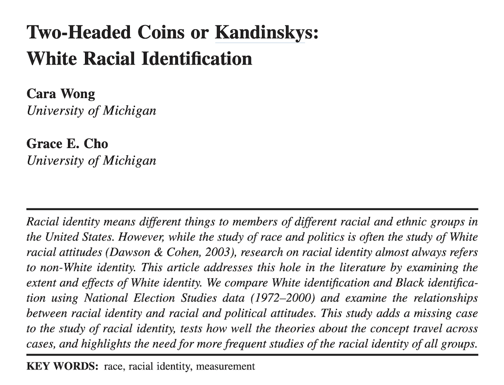 Wong and Cho find limited evidence that White identity strongly predicts policy views