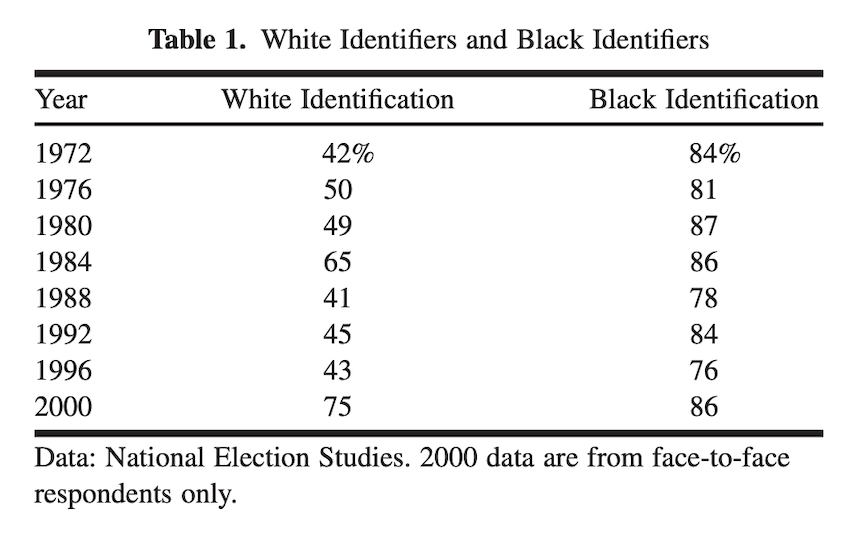 Jardina finds substantial levels of White identification
