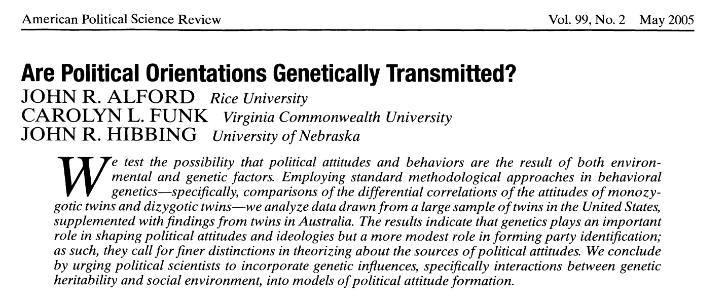 Map this variation onto political differences suggest they too have a heritable component