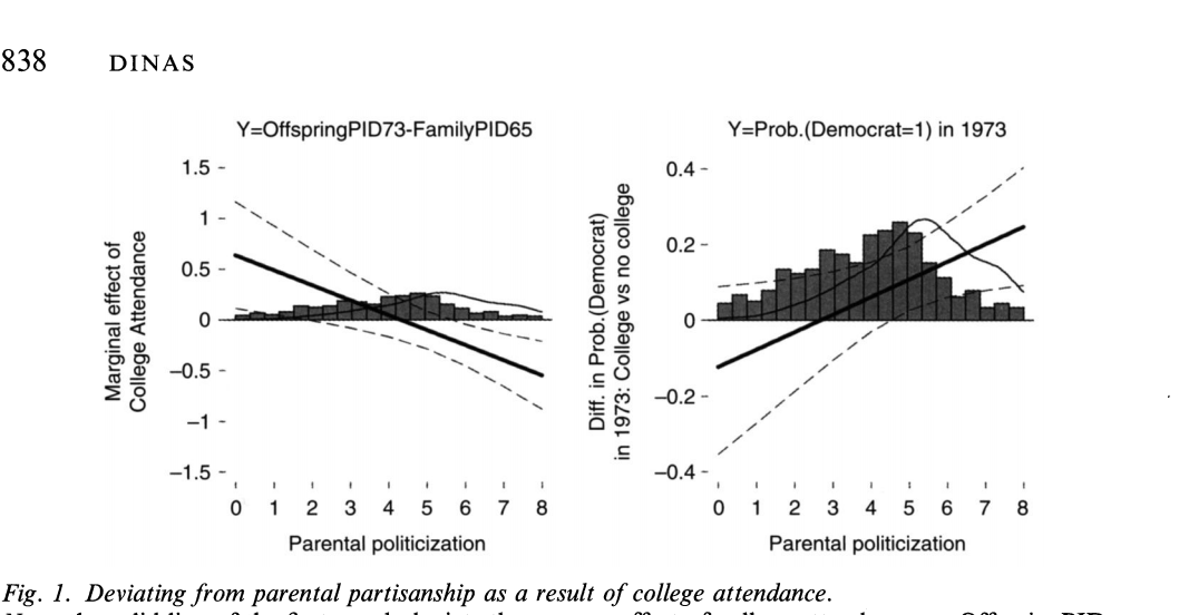 The reason politicized parents are more likely to end up with adult children who have divergent partisan preferences is that, by facilitating political discussions at home, they make the offspring more attentive to the political messages of their times (p 848)