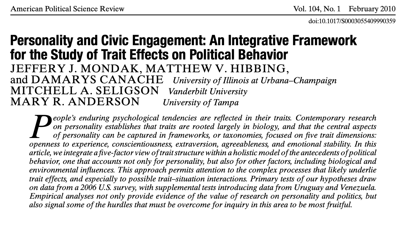 A growing body of research suggests many political differences have a dispositional component rooted in biological differences (Nature)