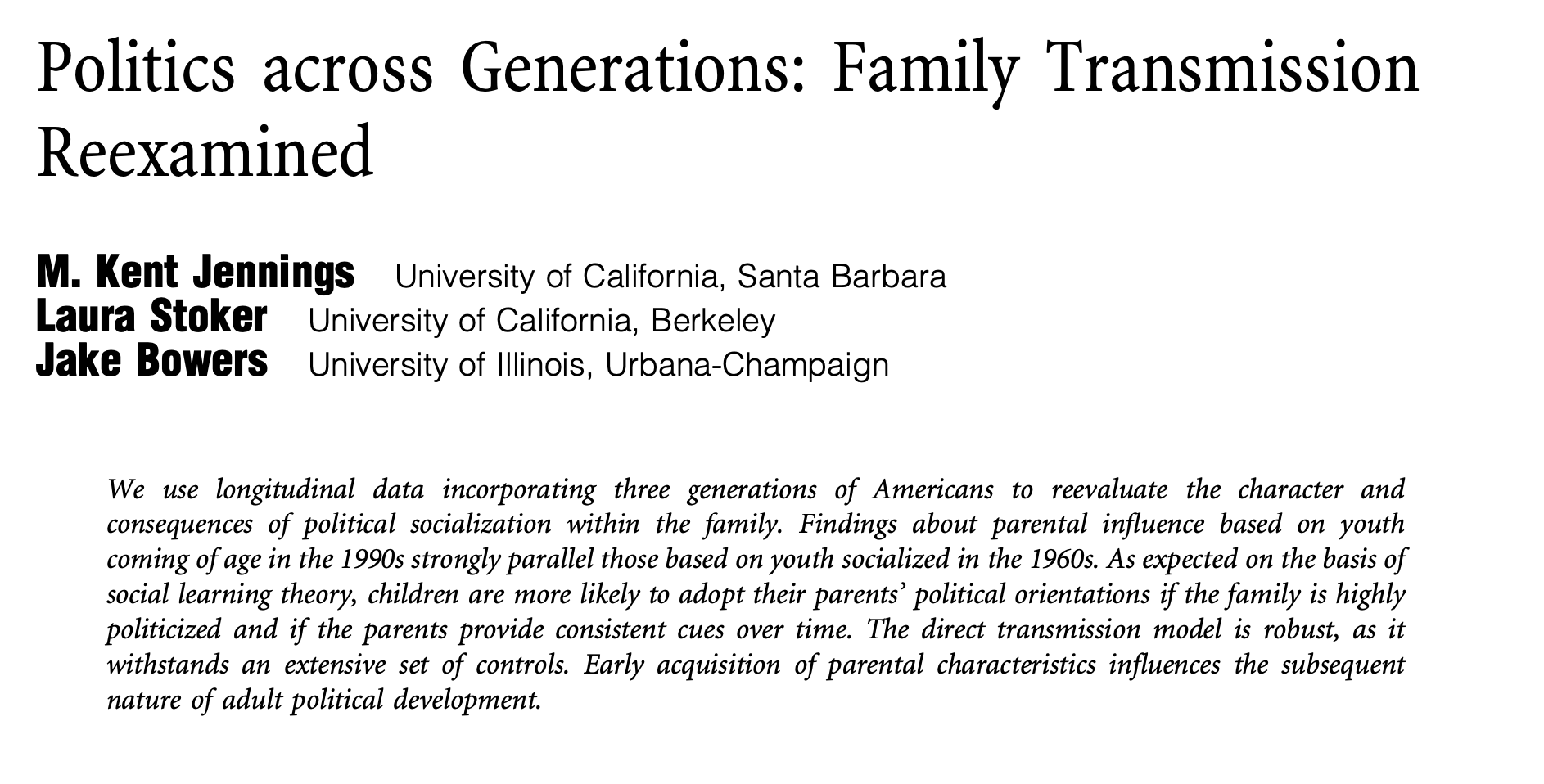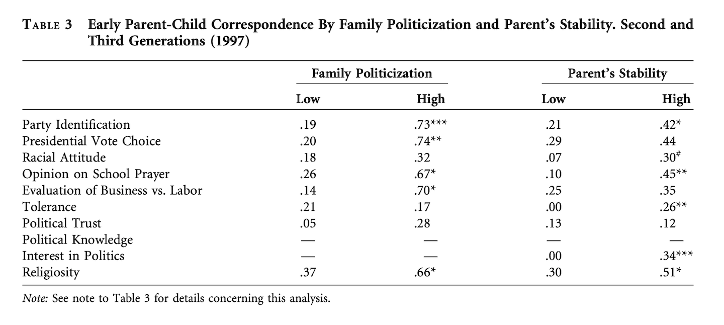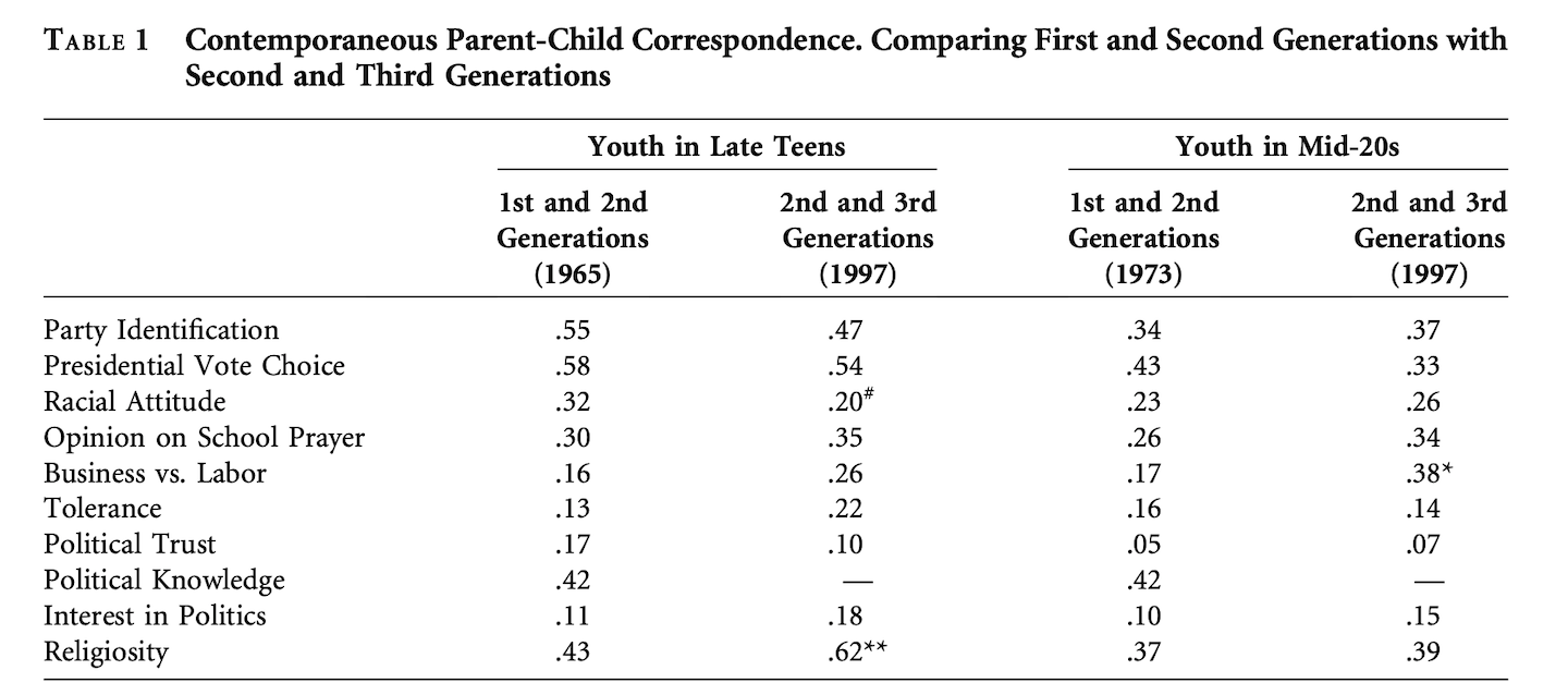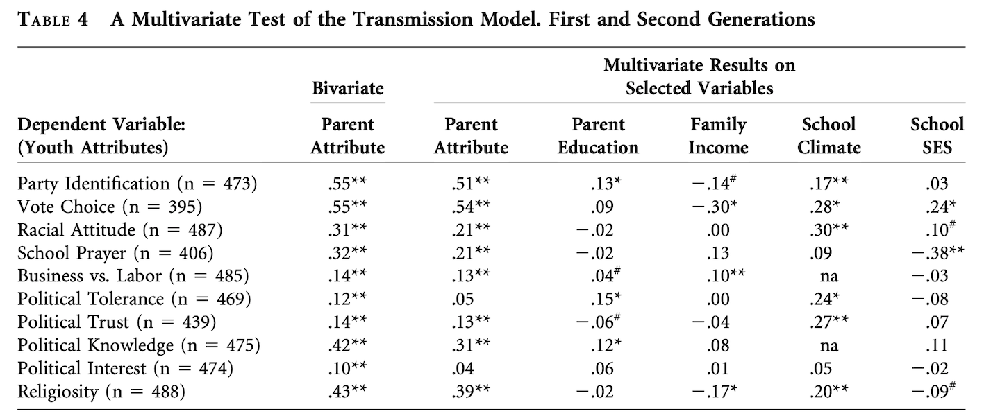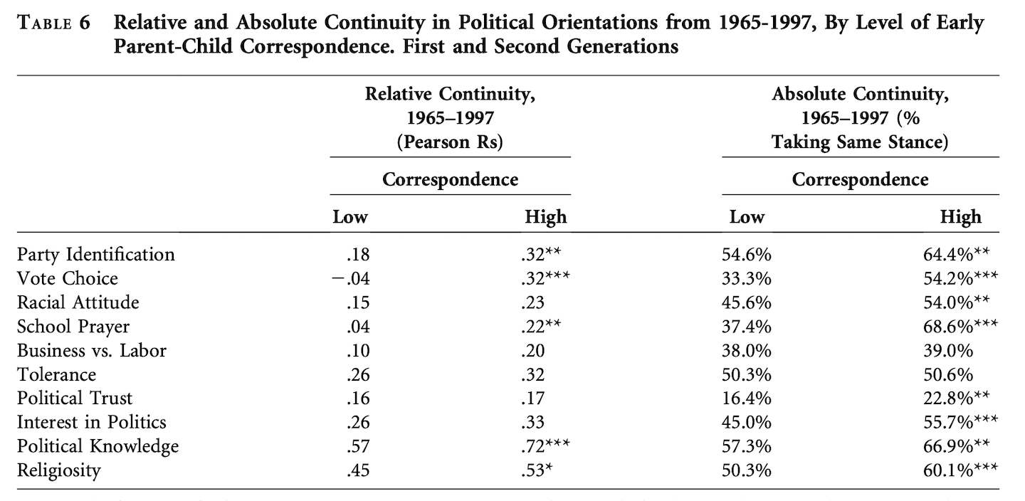 If children are at least partly the product of their parents’ role as political socializers, then the degree of continuity among the socializees should represent the residue of parental influence over time.